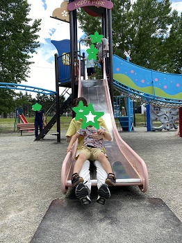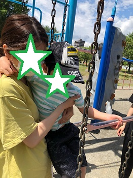 公園ではお友達に「遊ぼう」「こっちおいで」と声を掛けたり、遊具にのぼってくるお友達が落ちないように手で支えたりお互いのやさしさ、思いやりが目に見えるので感動します(`・ω・´)✨