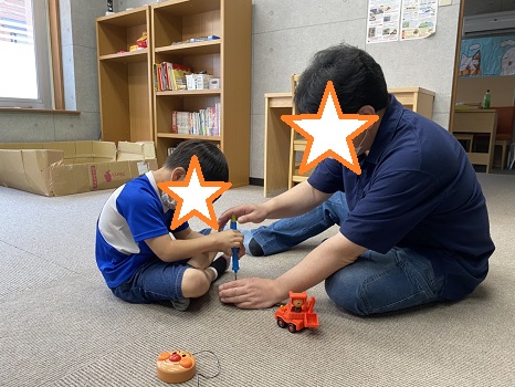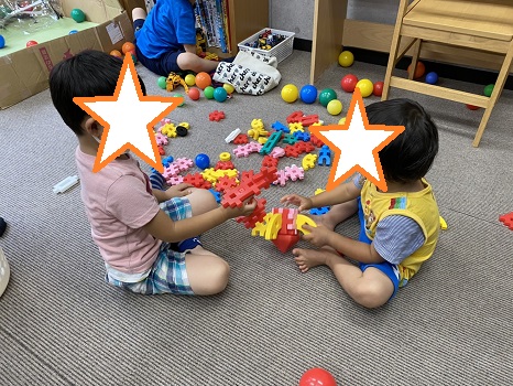 雨の日は室内でラキューをしたり、ボール遊び、ミニカー、大工さんセットなどで遊んでいます(*^-^*)🎶