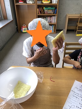 出来上がってそのまま食べる子、マヨネーズをかけて食べる子それぞれの食べ方で美味しく食べていました🎶