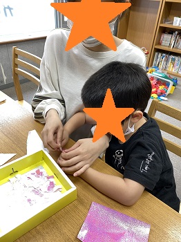 職員が作って見本を見せると、すぐに作業にとりかかるお兄さんたち❕それを見て小さい子たちも何をしているんだろうと興味を示してくれて、一緒にやってみるとどんどんコツを掴んで、職員よりもセンスのある作品が出来ていました😂さすがです✨